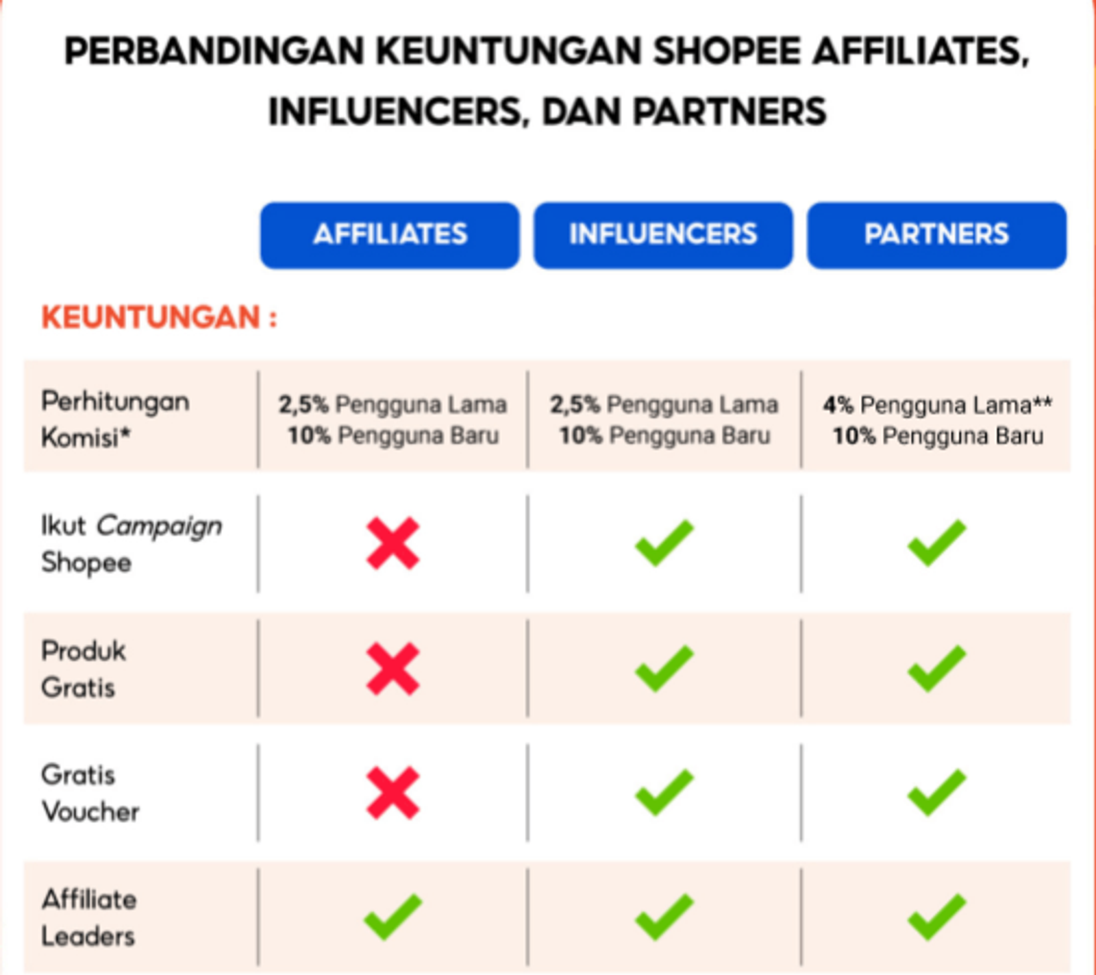 - Bonus komisi bisa mencapai 15 persen jika para member baru yang menggunakan kode tim milik Shopee Affiliates.