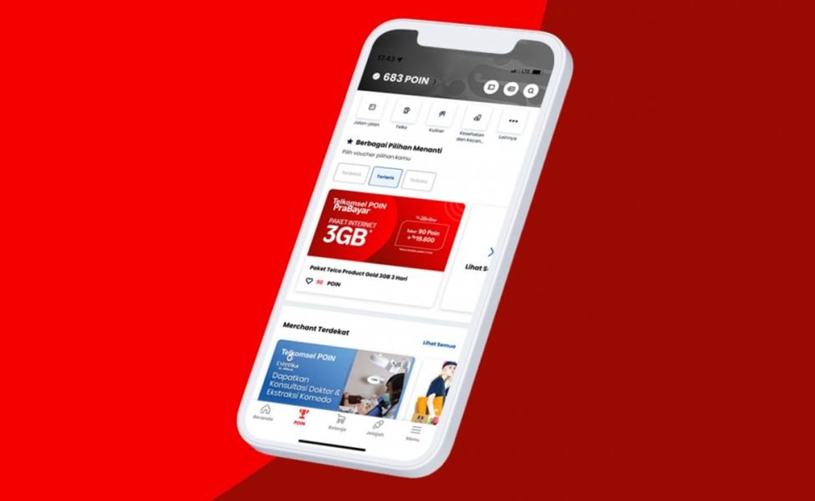 Bukan cuma pulsa dan kuota, kamu juga bisa tukar poin telkomsel dengan voucher belanja di berbagai merchant seperti Tokopedia, Shopee, Alfamart, Indomaret, dan lainnya.